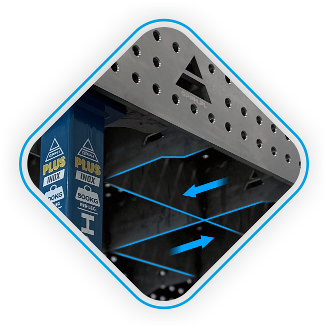Зварювальний стіл GPPH PLUS INOX 12 мм виготовлений з нержавіючої сталі марки 1.4301, яка характеризується високою корозійною та хімічною стійкістю і легкістю очищення, тому відмінно підходить для використання в харчовій, медичній, фармацевтичній промисловостях та інших галузях, де важливі чистота та стійкість до агресивних середовищ. Цей матеріал також має високу електропровідність, що створює оптимальні умови для зварних швів.