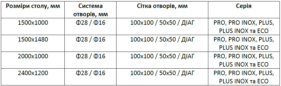 | Допуск площини столу (по всій поверхні стола) | ±0,3 мм |
