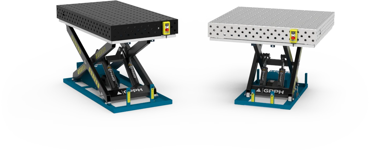 Професійні зварювальні столи зберігають свою площинність у будь-якому положенні: навіть при повному підйомі стіл залишається рівним, що дозволяє виконувати точні роботи на будь-якій зручній висоті. Це досягається завдяки жорсткій конструкції, товстій сталі та високоякісним гідроциліндрам із синхронною роботою.
